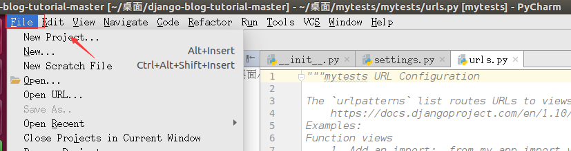 学习使用pycharm创建项目: 打开pycharm,点击File--New project