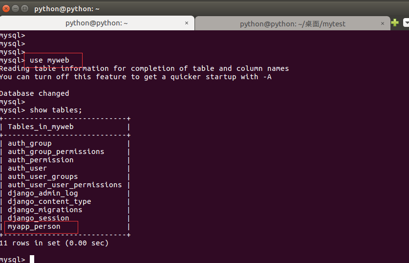 (py3) python@python:~/桌面/mytest$ python manage.py startapp myapp